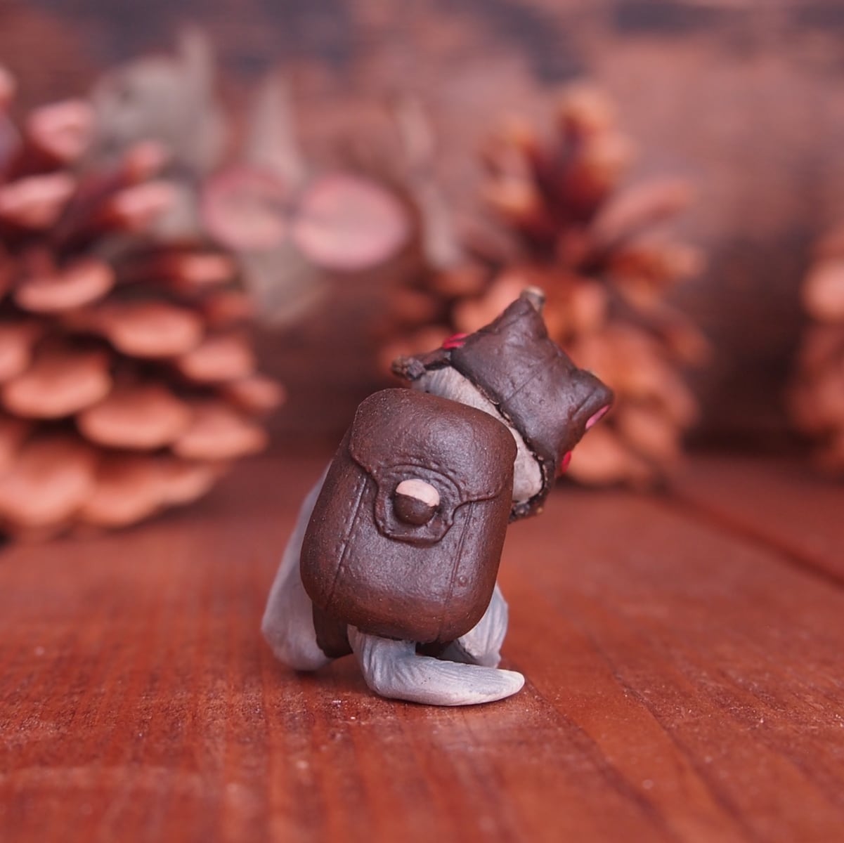背中に背負ったリュックに入っているのは「春一番草」の種。これを空から撒くのもモモンガ飛行隊のお仕事です。